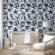 Un motif de plage amusant d'éléments nautiques y compris l'ancre, la mouette, l'étoile de mer et beaucoup d'autres, le tout en bleu marine avec tourbillons et des accents d'aqua bleu vague. Créez un décor de maison de plage ou de salle de bain avec ce motif original accrocheur. Recherchez ID839 pour voir d'autres produits avec cette conception.