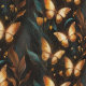 Papier Peint Papillons dorés et feuillage