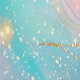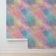 Cette tapisserie présente des tourbillons de couleurs pastel dans les tons rose turquoise, orange et jaune, aux accents dorés paradisiaques.