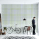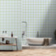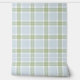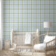 Un papier peint peel and stick avec un plaid simple mais élégant en bleu danois pastel et vert sauge.