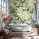 Papier Peint Pêcher la florale sur l'Arrière - plan vert style