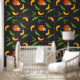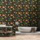 Papier peint à motifs de fleurs de pêches sudistes, feuilles et de pêches. Ce papier peint ferait un mur d'accents frappant avec son arrière - plan gris fusain très contrasté.