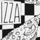 Papier peint sur le thème de la nourriture avec des tranches de pizza dessinées à la main et des herbes motif sur un arrière - plan en damier noir et blanc. Parfait pour créer un mur dans votre cuisine ou un restaurant !