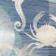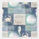 Des images vintages sur le thème de la plage et de la mer, en beige blanc et crème, sont disposées sur un vieil arrière - plan en bois avec des aqua teinté carré, un bleu profond et clair, et un blanc doux. Les images en crème et blanc sont un crabe, des coquillages de mer, un dollar de sable, un cheval de mer et deux mouettes qui grimpent en flèche ainsi que les mots "la plage est mon endroit heureux". Fait un beau papier peint marin sur le thème de la plage et de la mer.