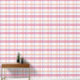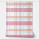 Un papier peint plaid moderne, rose, lilas, pêche et blanc cassé, créant un effet léger mais chaleureux et accueillant. Le charme simple de ce design en fait un établissement idéal pour un style joli et rustique.