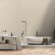 Peel et papier peint en bâton avec motif minimaliste en plâtre beige.