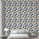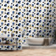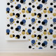 Ce fond d'écran amusant présente des pois en indigo bleu, or, noir et rayures. L'ajout parfait à votre décor maison.
