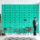 Points bleus et verts et lignes verticales sur l'arrière - plan menthe vert