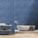 Dit herhalingspatroon van vissen die zwemmen wordt gemaakt in tinten van marineblauw, paarse en sinaasappel. Dit originele, unieke behangontwerp is perfect voor het toveren van wat strandvibes.