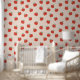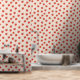 Petites pommes rouges juteuses dans un style griffé sur un papier peint beige. Parfait pour des décors fruités et des ambiances joyeuses.