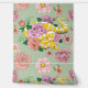 Un Python albino jaune se déplace autour de roses roses et pêche dans un arrière-plan turquoise.