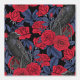Papier Peint Ravages et roses avec des feuilles bleu foncé
