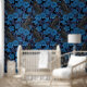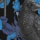 Design motif peint à la main avec corbeau perché sur une clôture métallique avec une clé sur un ruban dans ses factures et roses rouges