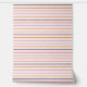 Cette motif minimaliste présente des rayures horizontales dans des teintes douces d'orange, de violet, de rose et de pêche, évoquant les couleurs chaudes et sereines d'un soleil couchant. L'épaisseur variée des lignes ajoute de l'intérêt visuel, tandis que la palette de couleurs douces garde le design léger et aéré. Le contraste subtil entre les rayures plus foncées et plus légères crée un aspect équilibré et harmonieux.