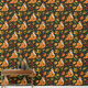 Un renard rouge avec citrouille, des glands et des feuilles d'automne dans un fond vert foncé
