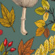 Faune et flore boisées d'automne peintes à la main - renards, feuilles forestiers, champignons et baies