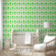 Papier Peint Retro les années 70 vert géométrique formes reposa