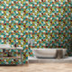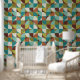 Papier Peint Retro Mod Carrés Vert Bleu Brown
