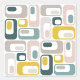 Bring a touch of retro flair to your interiors with this joyful wallpaper featuring a unique geometric design. The retro mood pattern combines calm and vivid colors that can transform any room into a stylish haven. Perfect for those looking to make a bold statement, this wallpaper is sure to impress your guests and enhance your decor. Explore the endless possibilities of revitalizing your environment and express your personality with this eye-catching design.