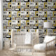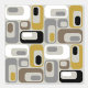 Papier Peint Retro Mod Ovals Mustard Grey Beige Taupe Black
