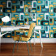 Papier Peint Retro Mod Ovals Mustard Turquoise Aqua Blue Black