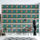 Le design présente des peintures abstraites dans les tons bleu aqua, gris, marron en pierre et gris, ainsi que des coeurs dorés et des fleurs d'hydrangée rose, le tout présenté dans un élégant motif géométrique rayé. Pour des questions ou des demandes spéciales, contactez l'artiste à l'adresse wafadahdalcreates@gmail.com. © Wafa Y. Dahdal - Tous droits réservés. Art WD
