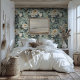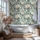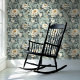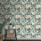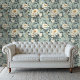 Papier Peint Roses blanches de style Chintz sur Floral Bleu