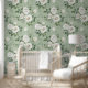 Papier Peint Roses blanches en vert clair