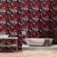 Papier Peint Roses et coeurs floraux rouges, noirs et blancs