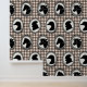 Hand-drawn animal cameo prints (horse, cow, rooster, duck) on ticking stripe or gingham in black, mocha and khaki make for a rustic barnyard farmhouse collection. Ideal for wallpaper, curtains, aprons, recipe binders, placemats, napkins, and journals—bringing cozy vintage country kitchen charm to your table and walls.