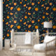 Accentuez vos murs avec ce papier peint à motifs d'agrumes riche. Il présente des oranges vibrantes et des fleurs d'oranges avec des feuillages feuillus qui dansent sur un arrière - plan bleu marine foncé.