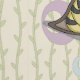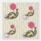 Sadie l'escargot cachemire sourit alors qu'elle se balade dans sa coquille rayée sous ses fleurs roses préférées. Un motif de vignes et de cercles funky est assis sur une base crème pâle pour créer un décor mignon pour la scène.