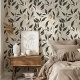 Papier Peint Sérénité botanique moderne - Floral noir & beige