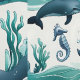 Papier Peint Sous la mer avec dauphins et hippocampes amovibles