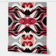 A bold symmetrical abstract design featuring flowing organic shapes in red, black, cream, and soft gray tones. The mirrored composition creates a dynamic and balanced visual rhythm, giving the pattern a modern artistic feel ideal for ceramic tiles, wallpapers, and contemporary home décor surfaces.