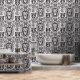 Ce papier peint luxueux présente un ensemble de têtes de lions de belle facture, dans un style graphite foncé.