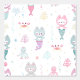 Papier peint sur le thème nautique décoré de chatons de sirène mignons.