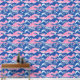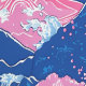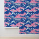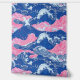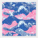 Un motif sans couture dessiné à la main avec un océan bleu foncé rugueux avec des vagues roses et des tourbillons d'eau blanche. Le design combine des éléments océaniques dynamiques avec une touche fantaisiste et artistique, créant un effet visuel audacieux et dynamique.