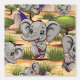 Elephant Cute Baby Happy Cartoon Character course et saut sur African Savannah Landscape. Illustration vectorielle originale Copyright BluedarkArt TheChameleonArt.