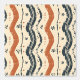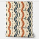 Cette oeuvre d'art est composée d'un motif rustique, dessiné à la main, aux lignes ondulées et aux motifs floraux simples. Le design utilise une palette de couleurs chaudes et terreuses de terre cuite et de bleu profond contre un arrière - plan crème, évoquant un sentiment de mouvement naturel et organique. Les lignes et les formes irrégulières et texturées confèrent au motif une sensation artisanale et artisanale, tandis que le flux rythmique des vagues crée un effet visuel apaisant et dynamique. Les éléments fleuris et géométriques éparpillés apportent un détail et un charme subtils à l'ensemble.