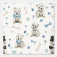 Le design est composé de West Highland Terriers blancs avec divers accessoires en bleu et noir tels que chapeaux, lunettes, cravates, écharpes et os sur un arrière - plan blanc. Montre ton amour pour Westies !