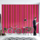 Wallpaper with vertical stripes. Light orange, dark pink and golden brown colors in stripes that vary in width.