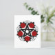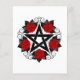 Pentagramme noir avec motif, décoré de fleurs, roses rouges avec feuilles sur arrière - plan blanc. Style tatouage.