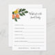 Demandez aux clients de la douche de remplir ces adorables souhaits pour les cartes bébé à votre baby shower. Avec une illustration d'oranges et de citrons sur une branche de verdure qui correspond à la collection d'amour Citrus. Personnalisez le avec le nom et la date de la douche de maman.
