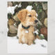 joli récupérateur jaune or jouant dans la neige contre mur de pierre de terrain avec lierre