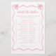 Maak uw feest onvergetelijk met dit gepersonaliseerde roze strik Baby shower Zou ze liever spel! Perfect voor het toevoegen van plezier aan uw baby shower game line-up, dit schattige spel is een must-have voor het baby showers van game-ideeën. Met een delicaat roze boog ontwerp, is het ideaal voor een roze boog baby shower thema of boog baby shower. Geniet van de gasten met deze elegante touch voor een roze baby shower ideeën, boog feest, of coquette baby shower thema dat iedereen zal aanbidden!