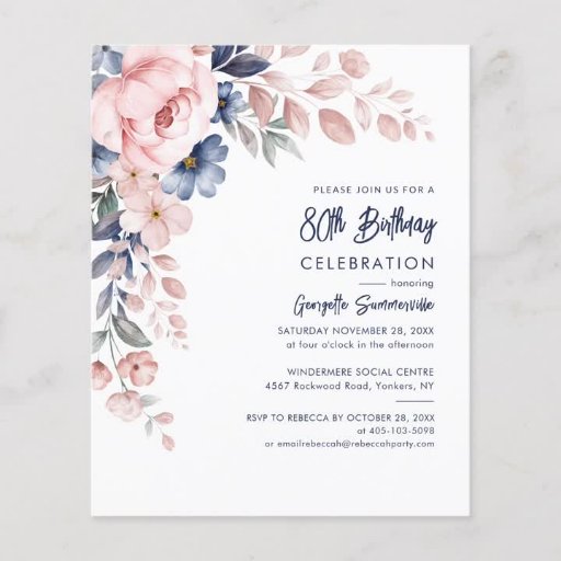 Papier Pink Floral 80th Birthday Party Invitation