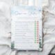 Au-dessus ou sous le baby shower jeu de cartes Baby shower, thème d'hiver avec pins et flocons de neige.