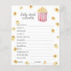 Baby shower à thème pop-corn aquarelle. Réponses : CRAVINGS, PLEIN, PACIFICATEUR, BOUTEILLE, LUMIÈRE NOCTURNE, LULLABY, STROLLER, ÉPIDURAL, BRÛLE, CHAISE HAUTE, SAC DE DIAPER, ÉPONSE