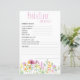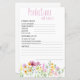 Fiche de prédictions et conseils pour convenir baby shower fleur sauvage, fille ou thème floral d'été. Une activité amusante pour impliquer les invités à votre baby shower, avec des paroles de sagesse pour les parents d'être. Ce joli design de fleurs sauvages aquarelle a des lettres blanches et élégant script avec des fleurs de prés délicates en rose lilas orange et jaune. Design floral féminin pour baby shower fille. Parcourez ma boutique, ma collection Meadow Fleur sauvage ou envoyez-moi un message pour les objets correspondants.